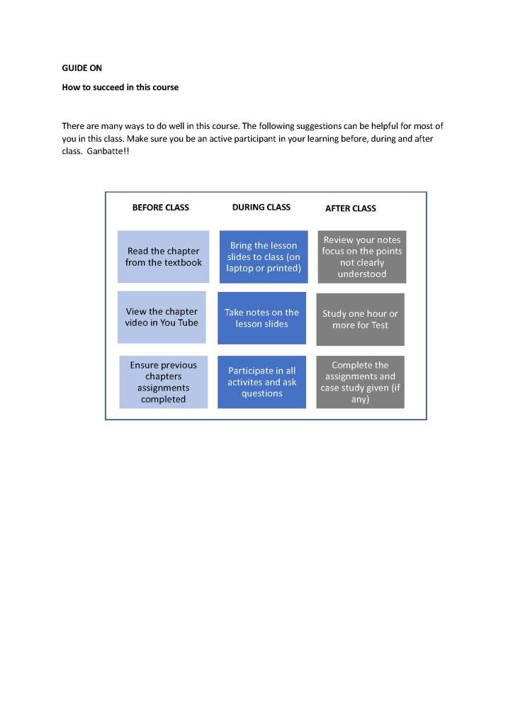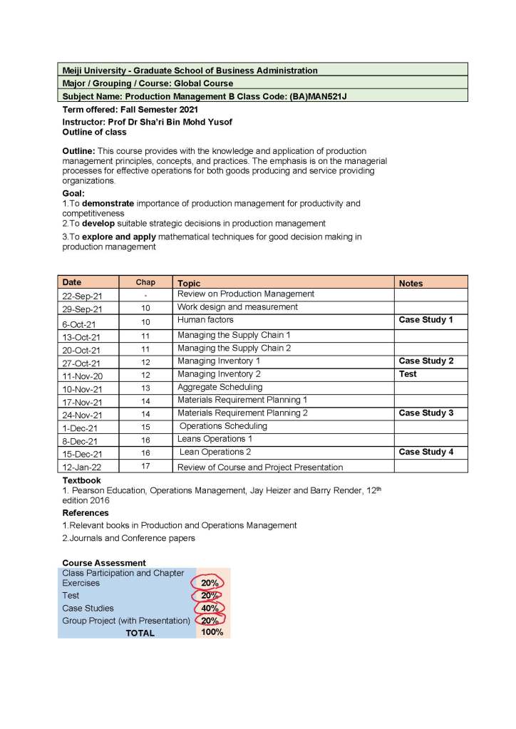I have also improved one of my course objectives (even experienced people makes mistake) changing to understand with to demonstrate. On top of that I have added in Oh-o Meiji! (Meiji’s Online TL Platform – in Nihongo) one sheet on Class Welcome and Guides, and How to Succeed in the subject – all based on the resources that Chris shared during his training on the course execution ideas.
