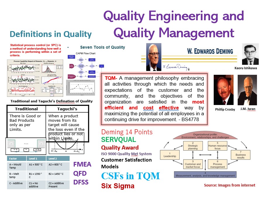 Quality means excellence. Work quality is doing the job excellently even when no one is supervising at you. Quality of products comes from design quality, process quality, human/work quality, and all related activities that influences quality including human activities and management system activities. The spectrum of knowledge domain within quality management (and surely will cut across quality engineering aspects) as shown in the illustration below is multifaceted and multidimensional. Achieving quality is definitely not easy, and requires commitment, perseverance, and continuous effort